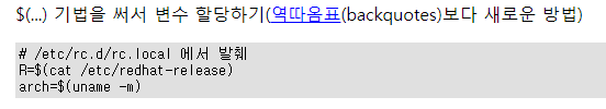 a=`ls -l` # 'ls -l' 명령어의 결과를 'a'로 할당